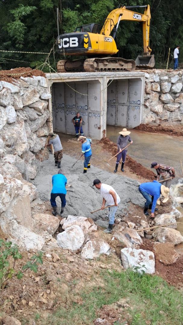 No local foram instaladas dez aduelas de concreto, divididas em duas linhas, para aumentar a capacidade de vazão da área, além da construção da cabeceira e dos muros de alas. A estrutura da ponte foi reforçada com a instalação de ferragens e a concretagem das bases superior e inferior das aduelas.