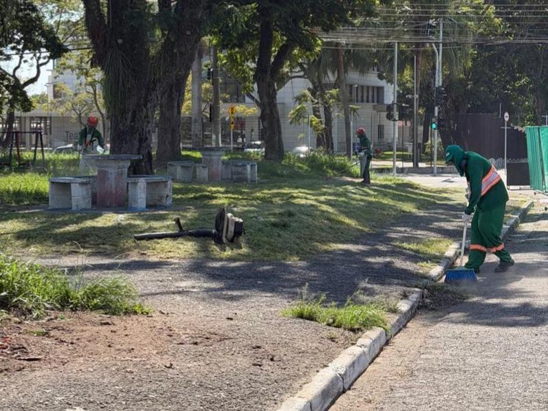 As equipes são compostas por operadores de roçadeiras e de soprador, ajudantes e caminhões para fazer a retirada de todo material. Com o reforço, 21 equipes estão atuando diariamente em diferentes regiões da cidade, além do retorno da equipe que faz as pinturas das guias.