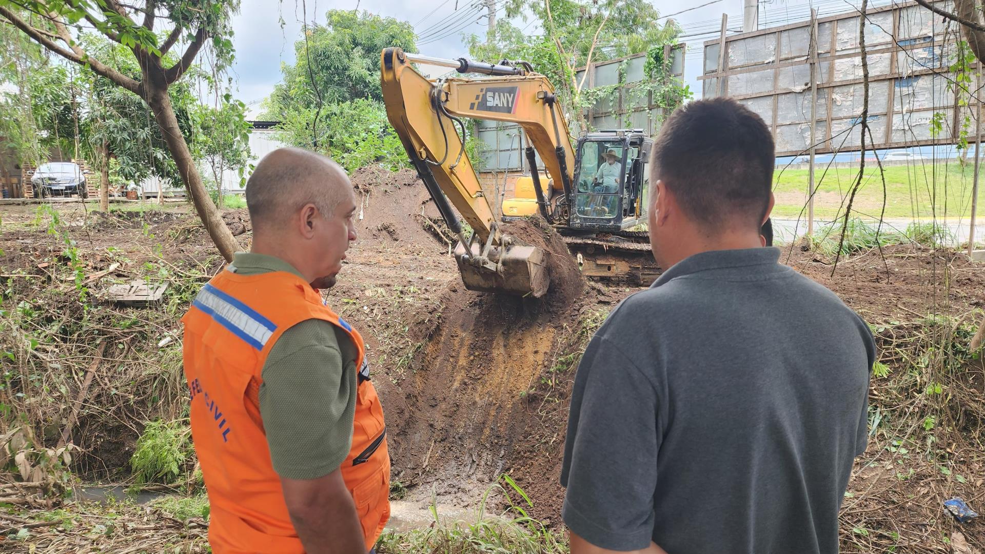 Durante a vistoria, a Coordenadoria Municipal de Proteção e Defesa Civil constatou que o sistema de escoamento de águas pluviais, que concentra a água que passa pelo córrego, se encontra ineficaz em decorrência de assoreamento severo.